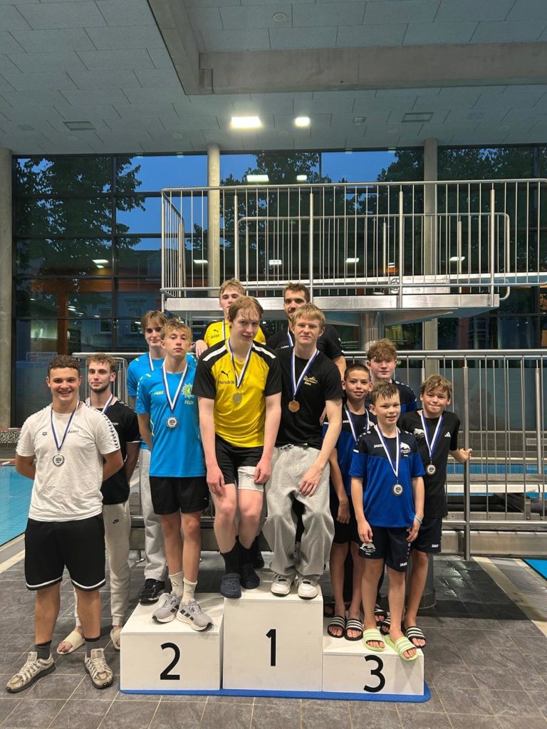 Die Trainerinnen und Trainer sind sich einig: An diesem Wochenende erbrachten vereinsübergreifend alle Schwimmerinnen und Schwimmer herausragende Leistungen, die im Rahmen der Siegerehrung gewürdigt wurden. Durchgeführt wurden die Siegerehrungen – unterstützt von Hubert Stüber von der Fachschaft Schwimmen – von Annette Geßner, der Vorstandsvorsitzenden der den Wettkampf ausrichtenden DJK Delphin Osterfeld. Tatkräftig unterstützt wurde sie von Kirsten Pufal, Mitglied des SSB-Präsidiums. Ihnen und allen weiteren Unterstützerinnen und Unterstützern, Kampfrichterinnen und Kampfrichtern ein herzliches Dankeschön für ihre „unterstützenden Flossenschläge“!