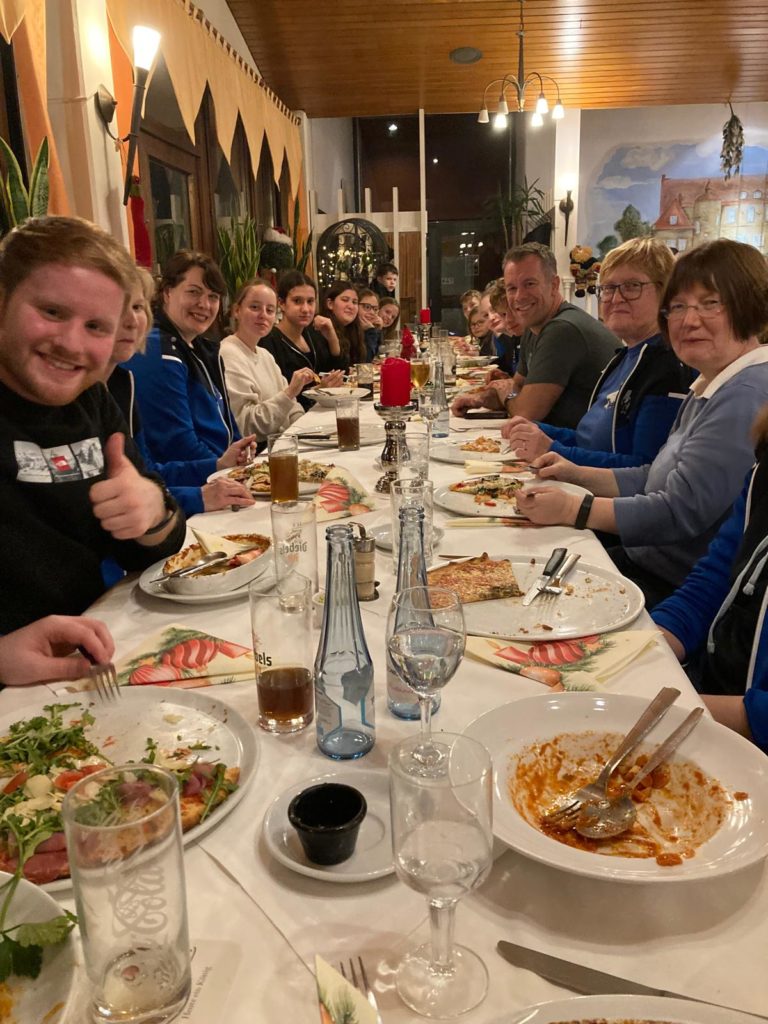 Das geplante gemeinsame Abendessen, das den gelungenen Wettkampf traditionell beschließen sollte, fand erneut im Restaurant Waldhof statt und war ebenfalls ein voller Erfolg. Mit müden Flossen, vollen Bäuchen, zufriedenen Gesichtern und vielen neuen Medaillen und Erinnerungen im Gepäck verabschiedeten sich die Delphine schließlich nach und nach in die Winterpause. Doch eins ist sicher: Der nächste Sprung ins Becken kommt bestimmt.